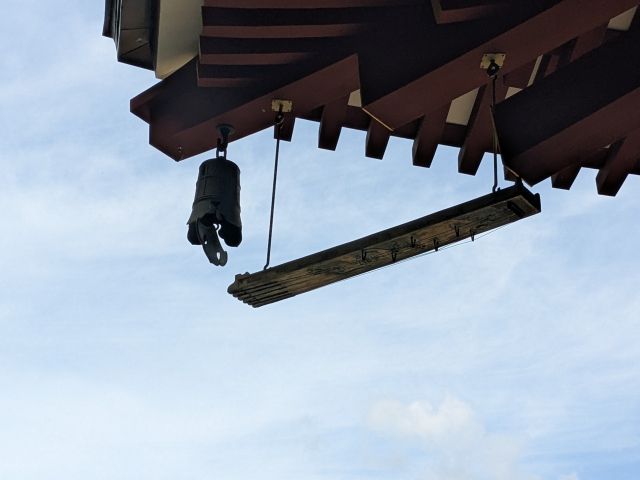 そっか、琴か。と納得しかけましたが、なぜ琴が吊るされているのでしょうか。しかも、弦が下に来るという逆さま吊り。