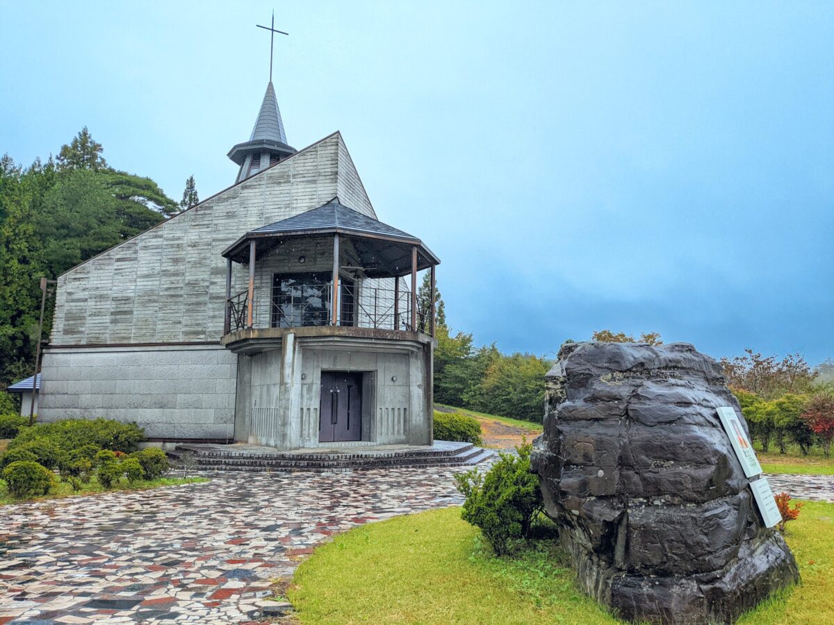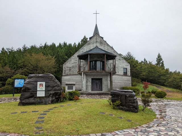 登り切った先で姿を見せるのは、教会のような佇まいの大籠殉教記念クルス館。