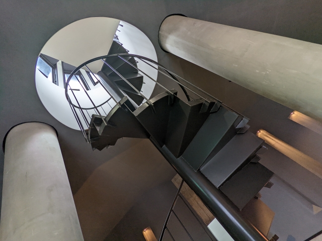 館内の中央には螺旋階段。登った先では園内を見渡すことができます。