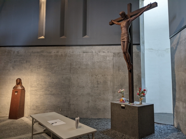 内部には十字架にはりつけられたキリスト像が静かに安置されています。