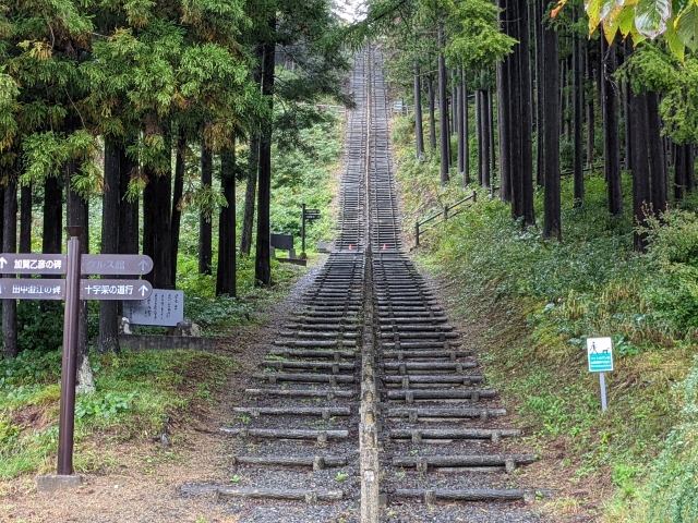 資料館からクルス館へは、屋外の階段を300段ほど登っていきます。この道は「歴史の道」という名が付けられているようです。