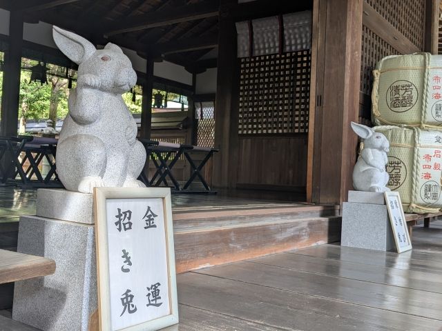 拝殿には招きうさぎもいます。招き猫は商売繁盛の縁起物ですが、ウサギは何を招いているのでしょうかね。