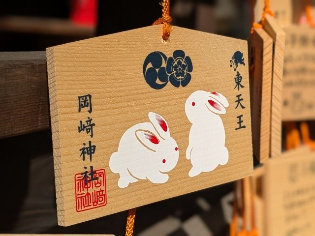 ところで、なんでこんなにウサギがいるのでしょうか?島根県の「出雲大社」は、御祭神・大国主大神に関わる神話「因幡の白兎」にちなんで多数のウサギが置かれており、埼玉県のウサギ神社「調神社」は月の満ち欠けを信仰する月待信仰がその由来でした。岡崎神社にはどういった由来があるのでしょうか。