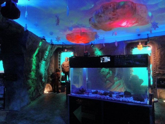 水深8.15mの海底世界に作られていたのは、まるでアトラクションのようなファンタジックな空間。いくつもの水槽が並ぶ水族館となっています。