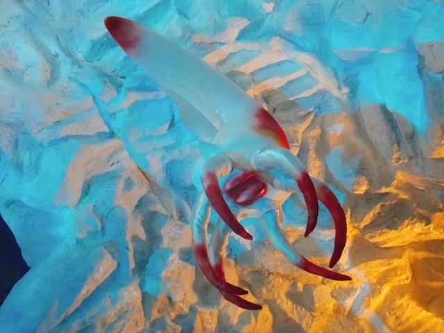 洞窟内には、そんなバッカルコーンのモニュメントが・・・!このサイズになるとモンスター感がはんぱないです。頭を突っ込めば、クリオネに補食された状態で記念撮影ができます。