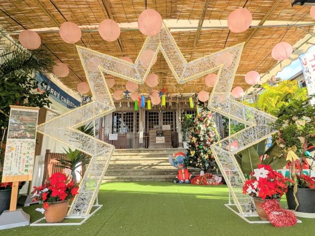 そしてなんとクリスマスツリーも!BGMは「きよしこの夜」などクリスマスソングのオルゴールバージョンが流れており、神社とは思えない雰囲気。
