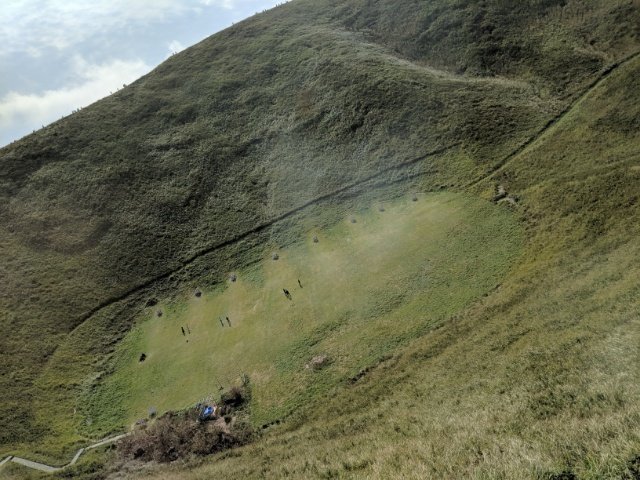 一般的にイメージする山と違う点は、樹木が全く生えていないところ。主に草を中心とした一年生植物でおおわれているため、つるんとした印象のなめらかなルックスの山となっています。