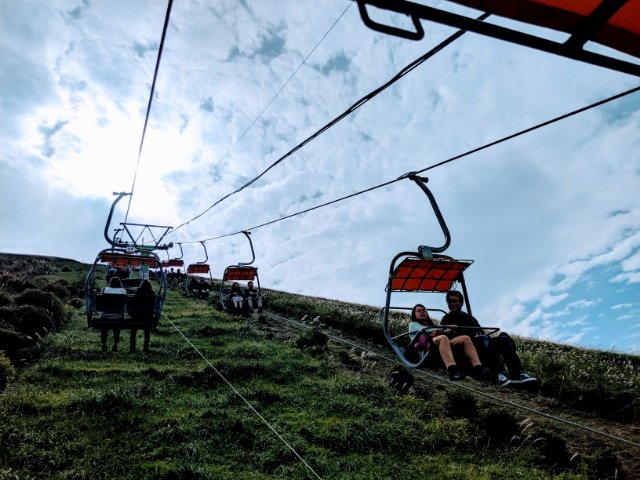 雪山以外で乗るリフトはとっても新鮮!まるで動いていないエスカレーターを登るような、なんだかすごく変な感じがします。