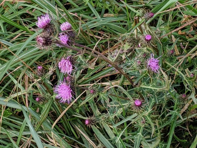 こちらはアザミ。切込みの深い葉や反り返ったトゲからトネアザミではないでしょうか。アザミは種類が多くて同定することがとっても難しいです。