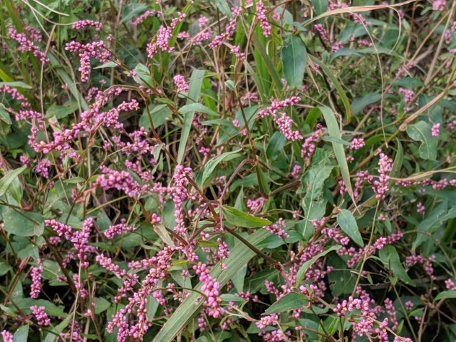ピンク色の小さい花はイヌタデ。決して珍しい花ではありませんが、ススキに紛れてアクセサリーのように咲いている花はとってもかわいらしい。