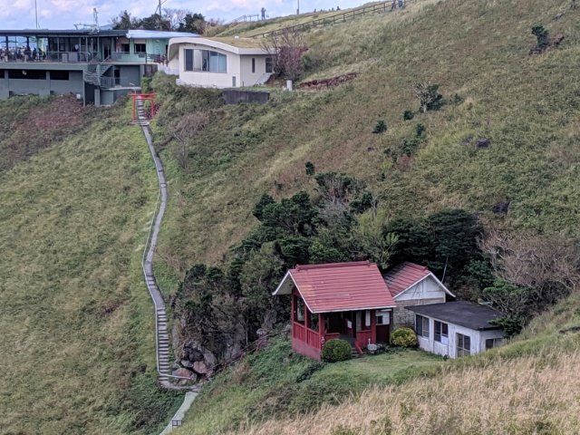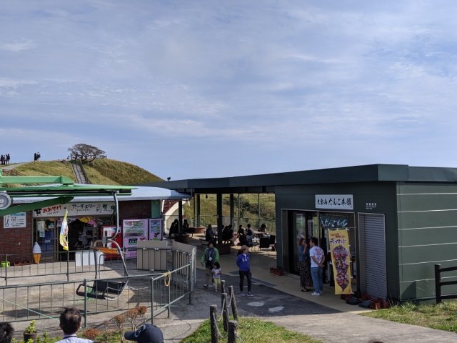 済んだ空気が流れる山頂に到着。そこにあるのは小さなお土産&軽食屋さん、大室山だんご本舗。かなりきれいなトイレもあります。