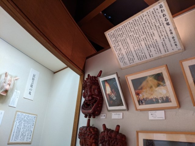 展示物を見るのはもちろん、テキストで書かれた「鬼の考察」は読み応え抜群。「祀られる鬼」「仏と鬼」「神楽の鬼」「暮らしの中の鬼」「追われる鬼」「民俗芸能の鬼」と、それぞれのテーマについて書かれているのですが、読んで行くと鬼という存在が時代に合わせて変遷していく様子を知ることができます。