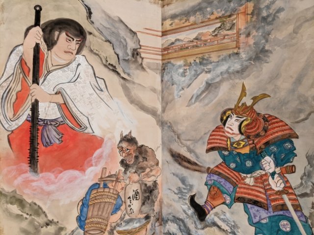 童子は山伏の正体を見極めようと、人の肉や血の酒を振る舞います。頼光たちはこれを食べ、疑いを避けることに成功。童子は打ち解けるように。頃合いを見て頼光は、道中に神々から授かった「神便鬼毒酒(じんべんきどくしゅ)」を鬼たちに飲ませます。この酒は人が飲めば薬となるが、鬼が飲めば神通力を失うという効力を持ったもの。童子が酔いつぶれている隙をつき、見事討ち取ることに成功しました。