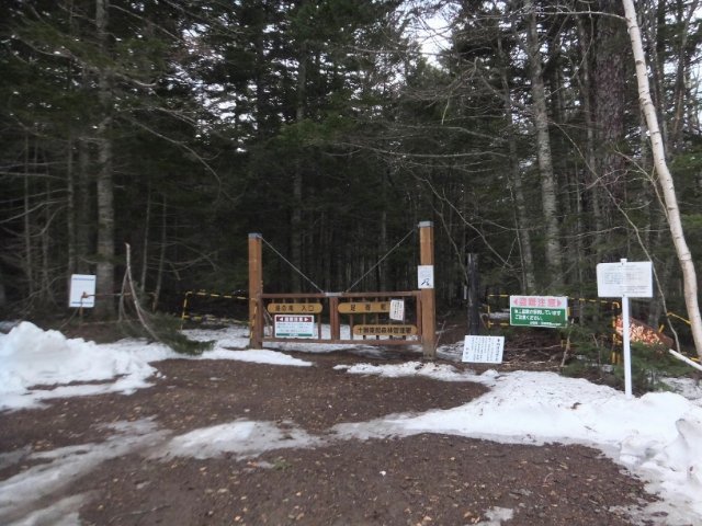 湯の滝へ向かうには森の中の遊歩道を進みます。ゲートが閉じていますが、これは車両通行止めの意味。立ち入り禁止というわけでは無いようです。