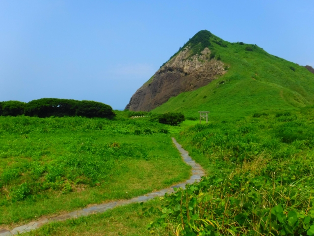 岩の頂上には石塔があり、航海の安全を守る竜神と信仰されているそう。約20分ほどで登れるらしいのですが、残念ながら通行止めでした。