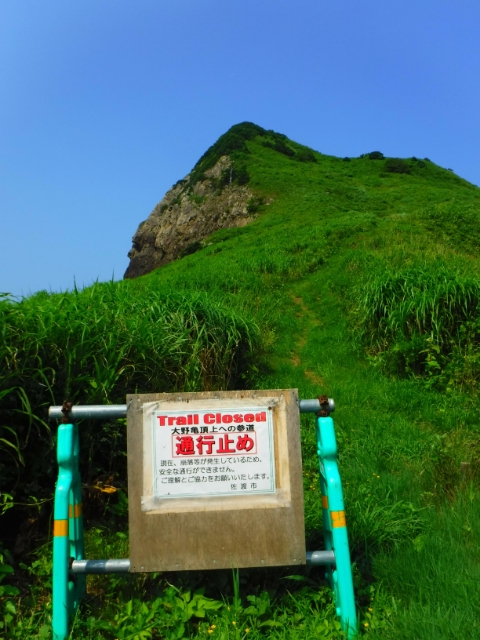 大野亀の周辺は遊歩道が延びているので散策可能。斜面で未舗装ですが、高い樹木はほとんど無いため、歩きやすいです。