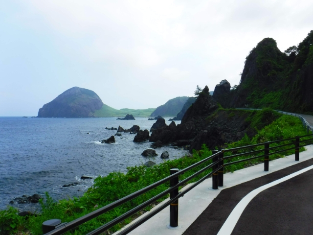 海沿いの道を走っていると、海上に浮かぶ大きな大野亀が見えてきました。