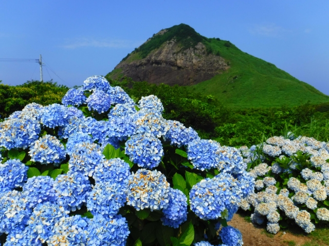 7月に訪問したためトビシマカンゾウはもう咲いていませんでしたが、代わりにアジサイがたくさんの花を付けていました。