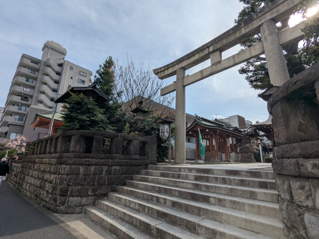 目黒駅から徒歩10分ほどのところに建つ大鳥神社。広い交差点の角に位置しており、開かれた雰囲気のあるスポット。目黒の総鎮守であり、11月に行われる酉の市でも知られる神社です。