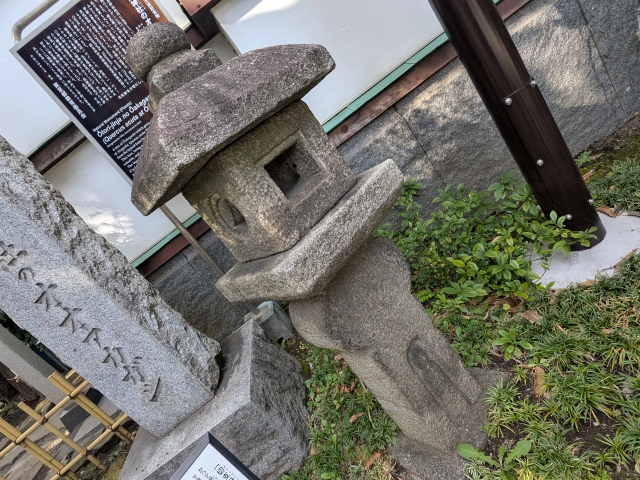 このような形状の灯籠を、「織部灯籠」とも呼びます。その名からわかる通り、桃山時代の茶人・古田織部が考案したそう。ということは、古田織部はキリシタンだったのでしょうか・・・?様々な説がありますが、明確な根拠はないようです。ただし、大坂の陣にて豊臣家との内通を疑われて自刃したという話があるため、キリシタンではないことを物語っているような気がします。(※キリシタンは自ら命を絶つことを禁じられているため)