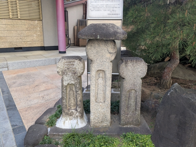 ここまで来たら、すぐ隣の大聖院へもぜひ足を運んでみてください!ここには、先ほどと同じ形状の切支丹灯籠が3基も並んでいます。こちらも大鳥神社と同様に、松平忠房の屋敷にあったものであるそう。