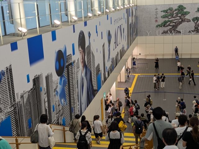 この時間は混雑もなく、サクッと夢洲駅へ。駅構内にて万博に訪れる人々を見守る阿部寛と向井理。これで見納めです。