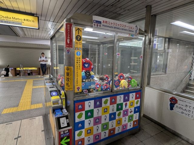 大阪メトロ中央線もそれほど混雑なく、本町駅へ。クロネコヤマトに預けていた荷物を受け取り、御堂筋線で新大阪駅へと向かいます。駅構内の「ミャクミャクステーション」、ミャクミャク以外にも「あかしろあか」や「サーキュラー」など、各キャラ勢ぞろいで楽しくなります!