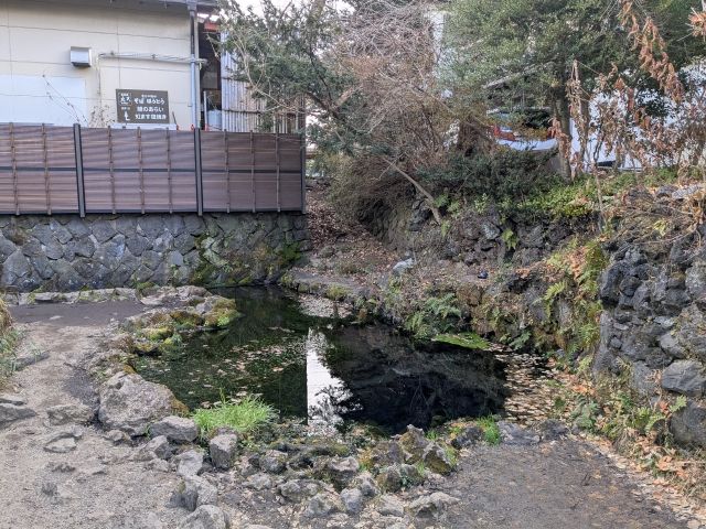 路地裏を入ったところにある、小さな池。面積は24㎡と、忍野八海で最小。