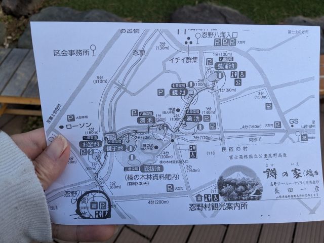 今回利用した「ますの家 大駐車場」(有料駐車場500円)では、マップがもらえました!順路が記されていてとってもわかりやすいので、取り急ぎこの通りにまわって見ることにしました。