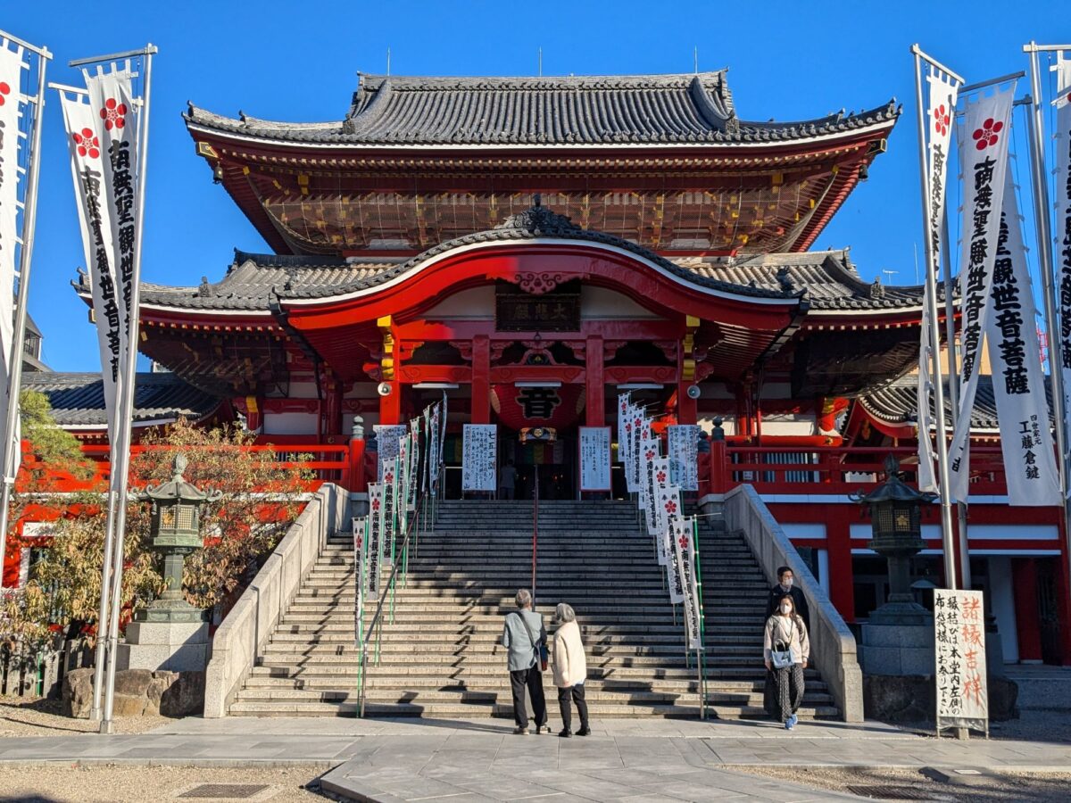 仁王門をくぐり、境内に入るとすぐに目に入るのが御本尊である聖観音を安置する本堂。高い位置にあるため、街を見守っているような佇まい。地元の方が次々と参拝に訪れており、地域の人に親しまれている印象です。