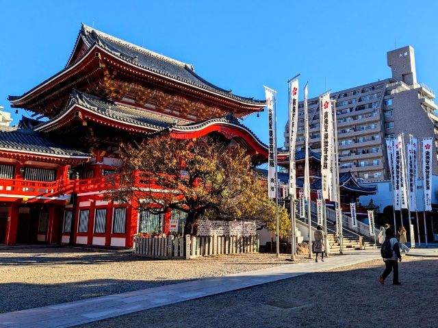 1612年に徳川家康の命により犬山城主・成瀬正成が大須の地に移転。江戸時代には五重塔も建てられていましたが、火災により本堂などとともに焼失。本堂と仁王門は再建されるも、太平洋戦争の名古屋大空襲により再度焼失。1970年に鉄筋コンクリートにて再建され、現在に至ります。