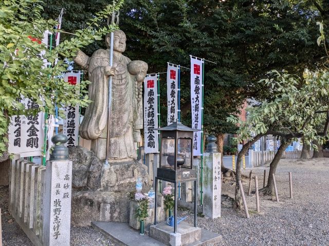 ここは真言宗智山派の別格本山の寺院。境内には真言宗開祖である弘法大師修行像も建立されています。