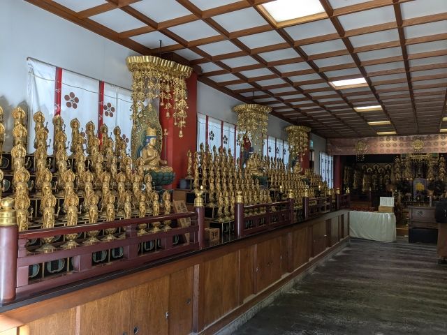 本堂向かって左手にある普門殿は、十二支・干支の守り本尊を奉るお堂。金色に輝く仏像がずらりと並ぶ様は圧巻でした。