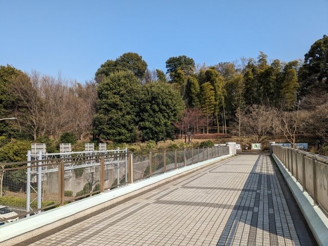 横浜市歴史博物館からは連絡通路が伸びています。歩道橋を渡って遺跡公園へ。先に博物館で少し知識を入れてから行くのもおすすめです。