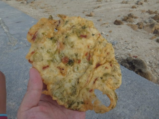 沖縄の天ぷらって具材も独特ですが、何よりも衣が内地の天ぷらと全然違います。かなり厚手の衣で、外はカリカリ中はふわふわ。そして、衣そのものに味がついているので、天つゆや塩などの調味料は不要で食べることができます。