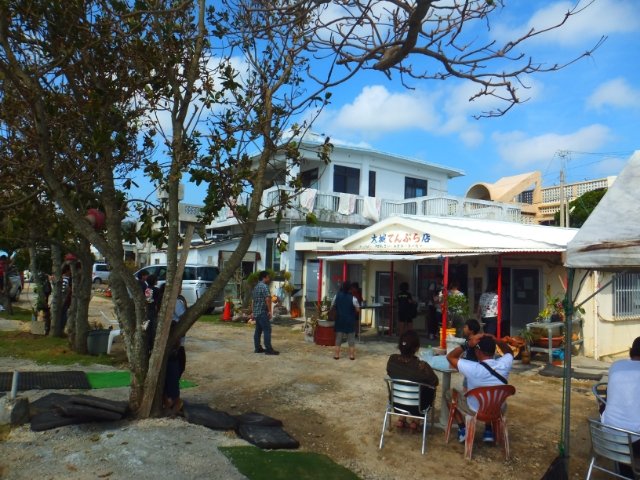 今回訪問した時は、島に渡ってすぐのところにある仲本鮮魚店が大混雑!橋から見てちょうど島の裏手側にある大城てんぷら店はそれほど並んでいないように見えたので、ここに決めました。