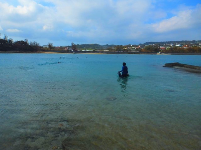 天ぷらばかりに気を取られがちですが、きれいな海もある奥武島。波穏やかなビーチなので、ダイビングしている人の姿も見かけました。