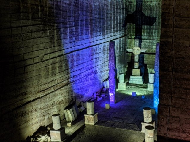 さらに、十字架のようなモニュメントが立つ祭壇のような部屋も見かけました。こちらも遠くから眺めることしかできない非公開ゾーン。期間限定で公開されるのか、もしくはロケ用に作られているのか定かではありませんが、見えないところにも多くの部屋があるようで、さらなるポテンシャルを感じます。