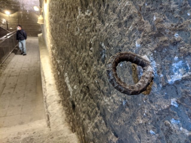 壁に付いているこちらの金属製の輪っかは、映画るろうに剣心で人を天井から吊るすために使用されたそう。