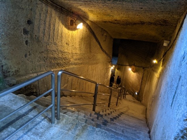 ここは採石場跡なので、この空間は石を切り出したあとにできたもの。ここまでキレイに切り出されていると、意図的に造り上げた神殿のようです。