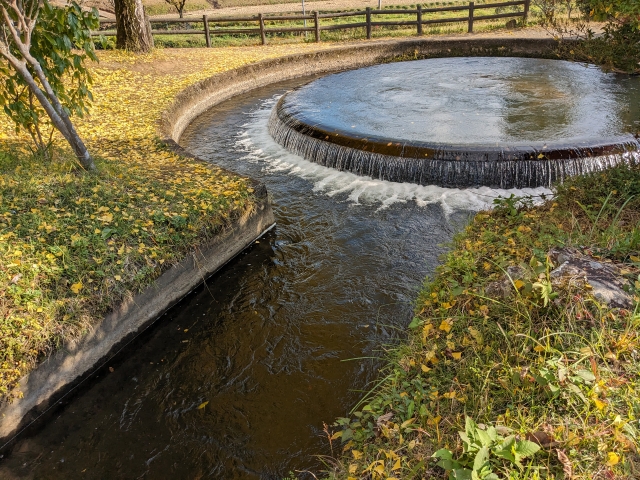 その問題を解消するために完成したのがこちらの「円形分水」。笹原川の水を各地域へバランス良く送るための施設なのです。