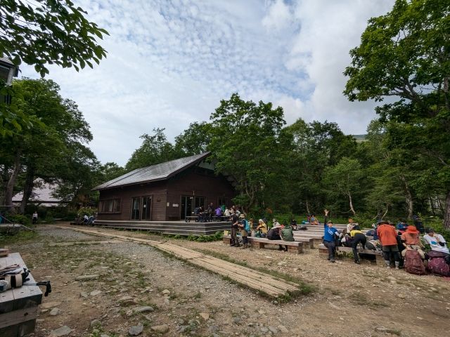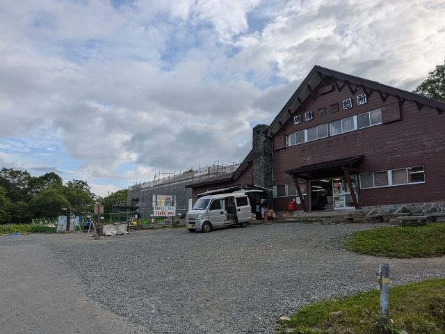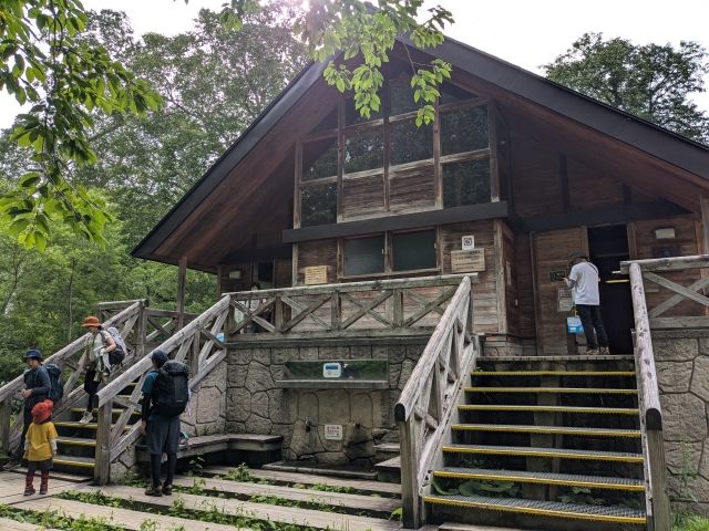 尾瀬第1駐車場から乗合タクシーでやってきた「鳩待峠」。車道を少し歩くと、鳩待峠休憩所が見えてきます。ここから先、「山の鼻」まではトイレや売店などはないので、出発前の最終調整に立ち寄りがおすすめ。