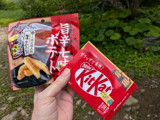 ついついお菓子も買っちゃった!!旨辛七味ポテトとキットカット。倍くらいの値段するけど、おじさん優しかったから感謝の気持ちも込めて。