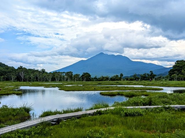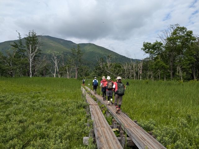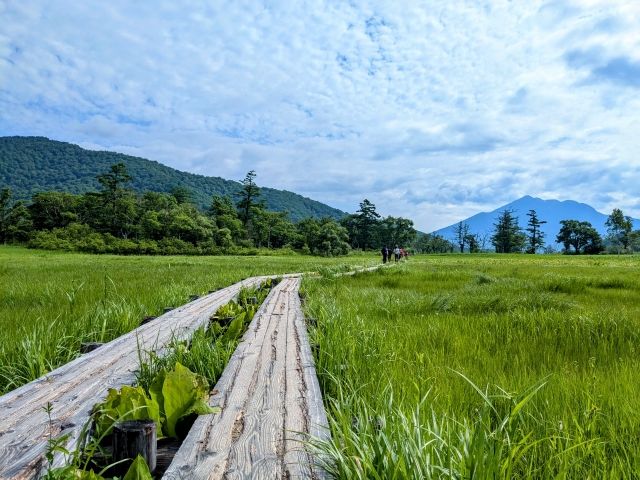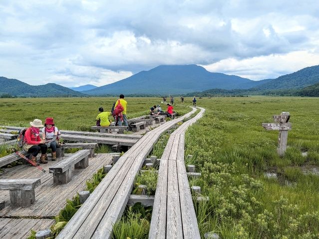 遠くに見える山は「燧ヶ岳」。福島県の最高峰であり、尾瀬のシンボル。一泊して燧ヶ岳を目指すコースもあるそうです。