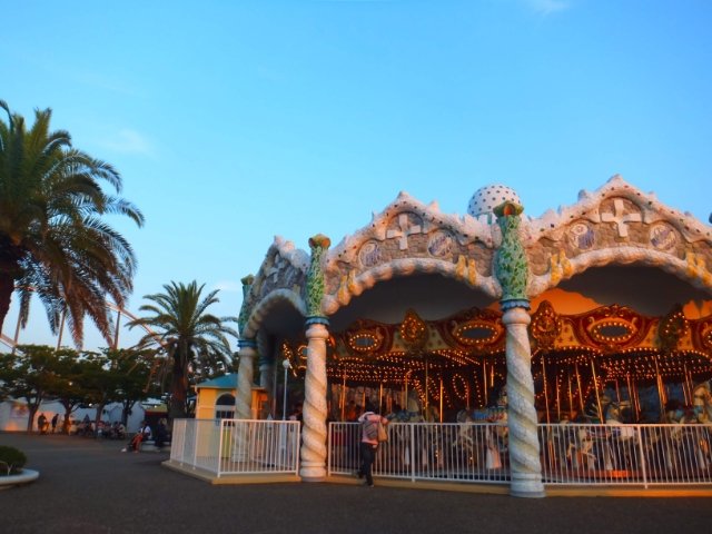 すぐ近くにあるメリーゴーランドはその名もガウディカルーセル。クラッシュタイルが散りばめられたファンタジックな仕上がりとなっています。