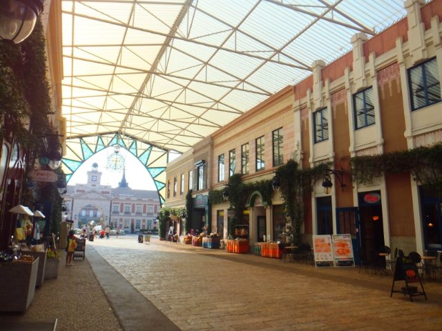わくわくしながら入ると、そこは本気のテーマパーク。バルセロナの中心街をイメージして作られたメインストリートの「エスパーニャ通り」はショップやレストランが並んでいます。