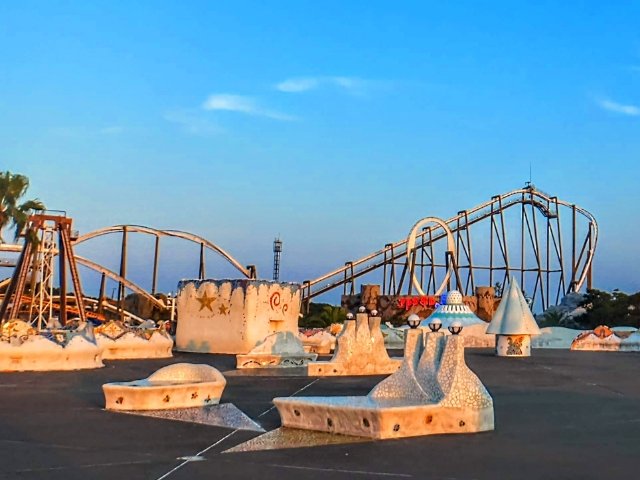 一つ大きく異なるのは、絶叫が鳴り響いているところ。すぐ近くに絶叫コースターが走っているため、悲鳴が鳴りやむことはありません。ちなみに、この建築の内部は「ダルのファンタジーワールド360」というシアタータイプのアトラクションになっています。