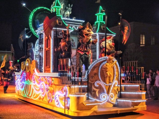 エレクトリカルパレード、はたまたねぶた祭りのようなイルミネーションカーが次々と通り抜けて行きます。混雑も少なく、自由に移動して好きなところでパレードを見ることができるのでとっても快適!