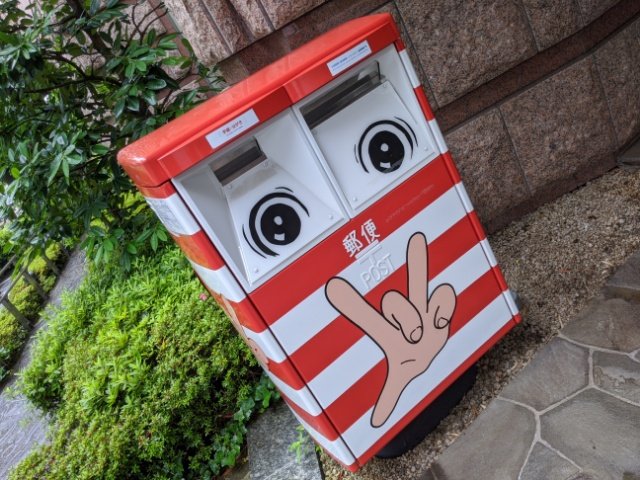 入り口には紅白の縞々が目立つ「まことちゃんポスト」が。目白に住んでいたことのある漫画家・楳図かずおのキャラクター、まことちゃんをイメージしてデザインされています。博物館開館20周年を記念して設置されたそうです。