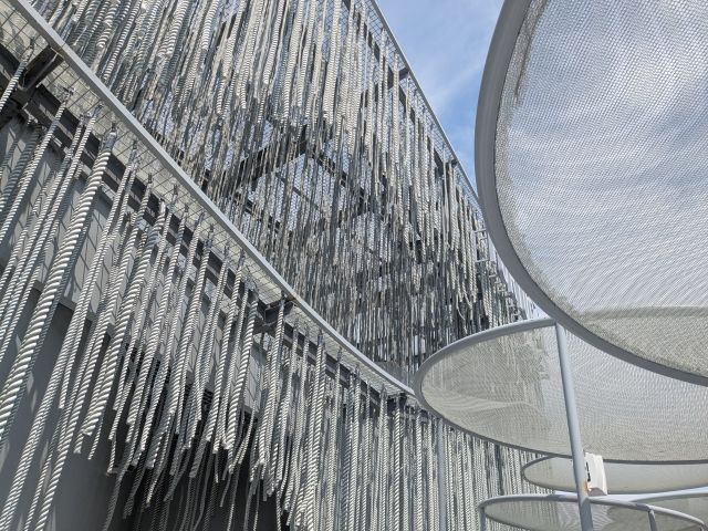 無数のロープに包まれた建築